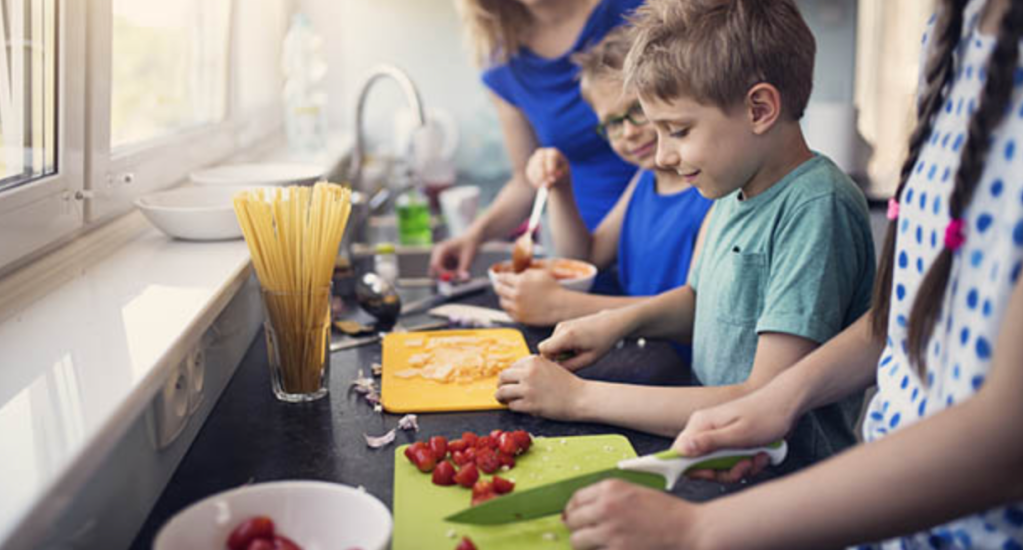 True: It is a well known fact that children mimic the actions of their role models. By parents cooking healthy options in front of their kids and leading by example, children are more susceptible to want to partake in the same behaviors. Help Guide gives multiple tips, like giving your kids age appropriate jobs, to make them more involved in the kitchen.