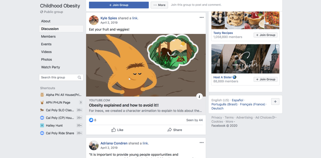 This public Facebook page was created by a random mother in an attempt to have somewhere for other parents to share their thoughts, concerns, and knowledge on childhood obesity. Although this Facebook page might contain some what resourceful information on how to combat childhood obesity, it is an overall non credible source because of its lack of validity.
